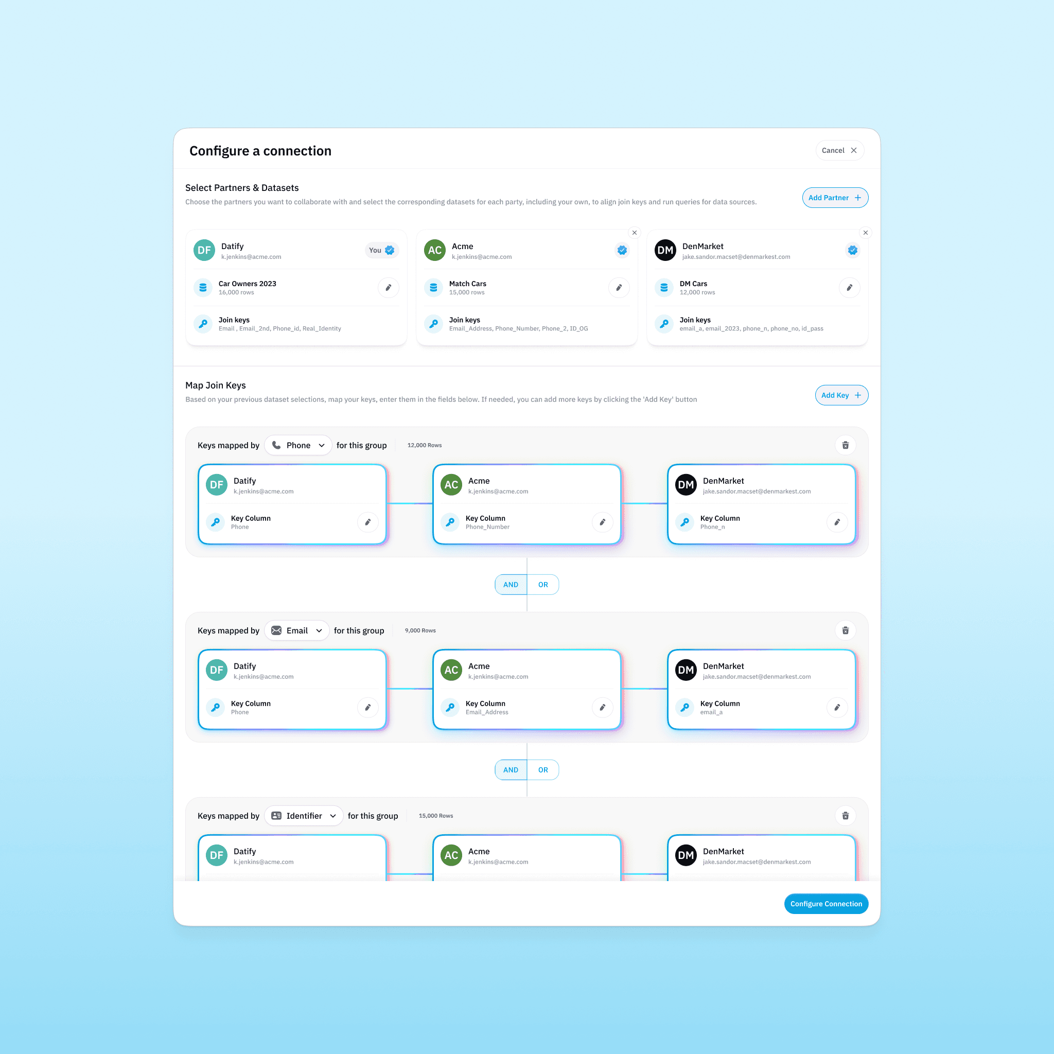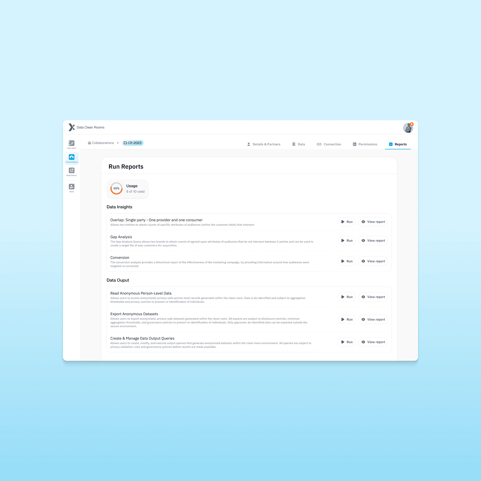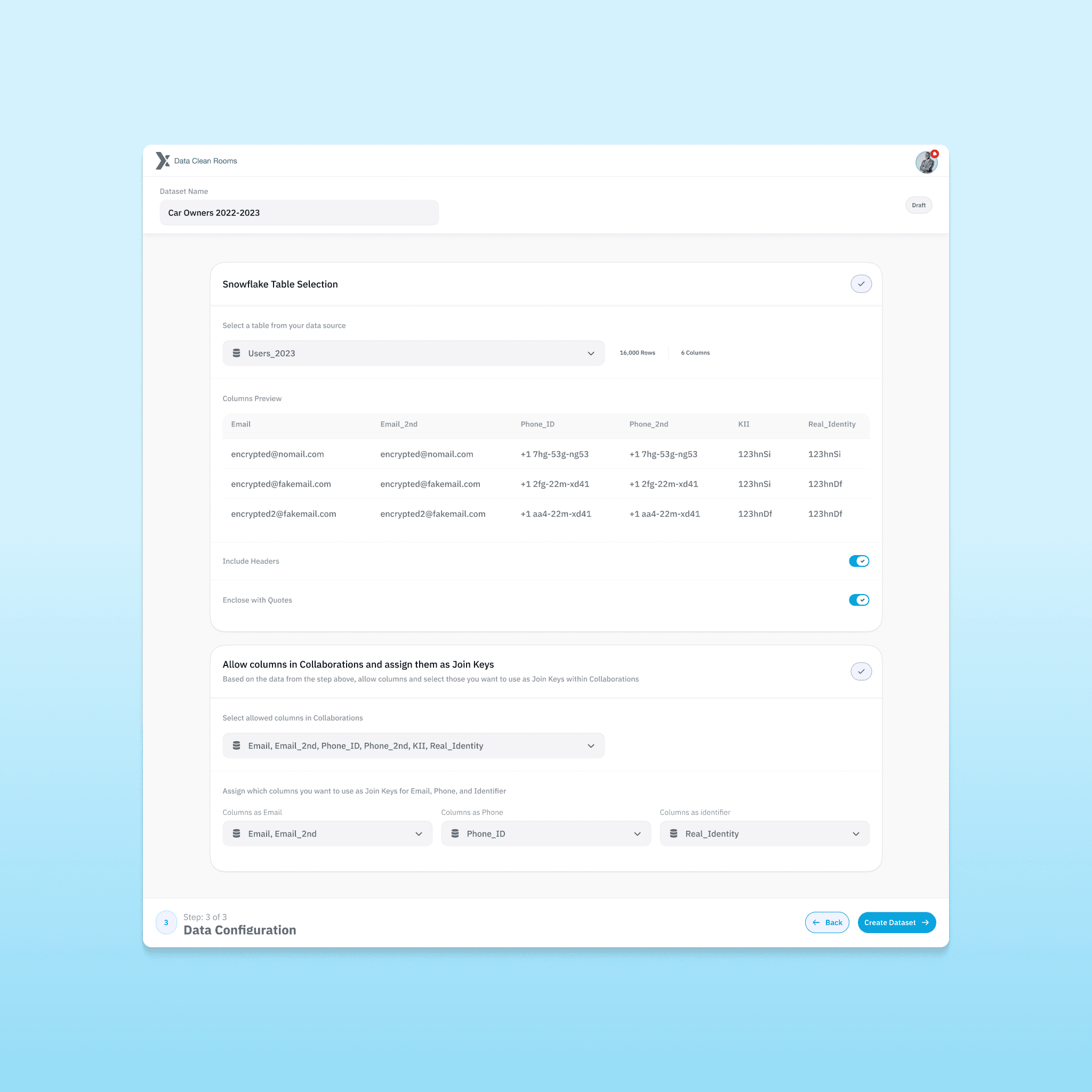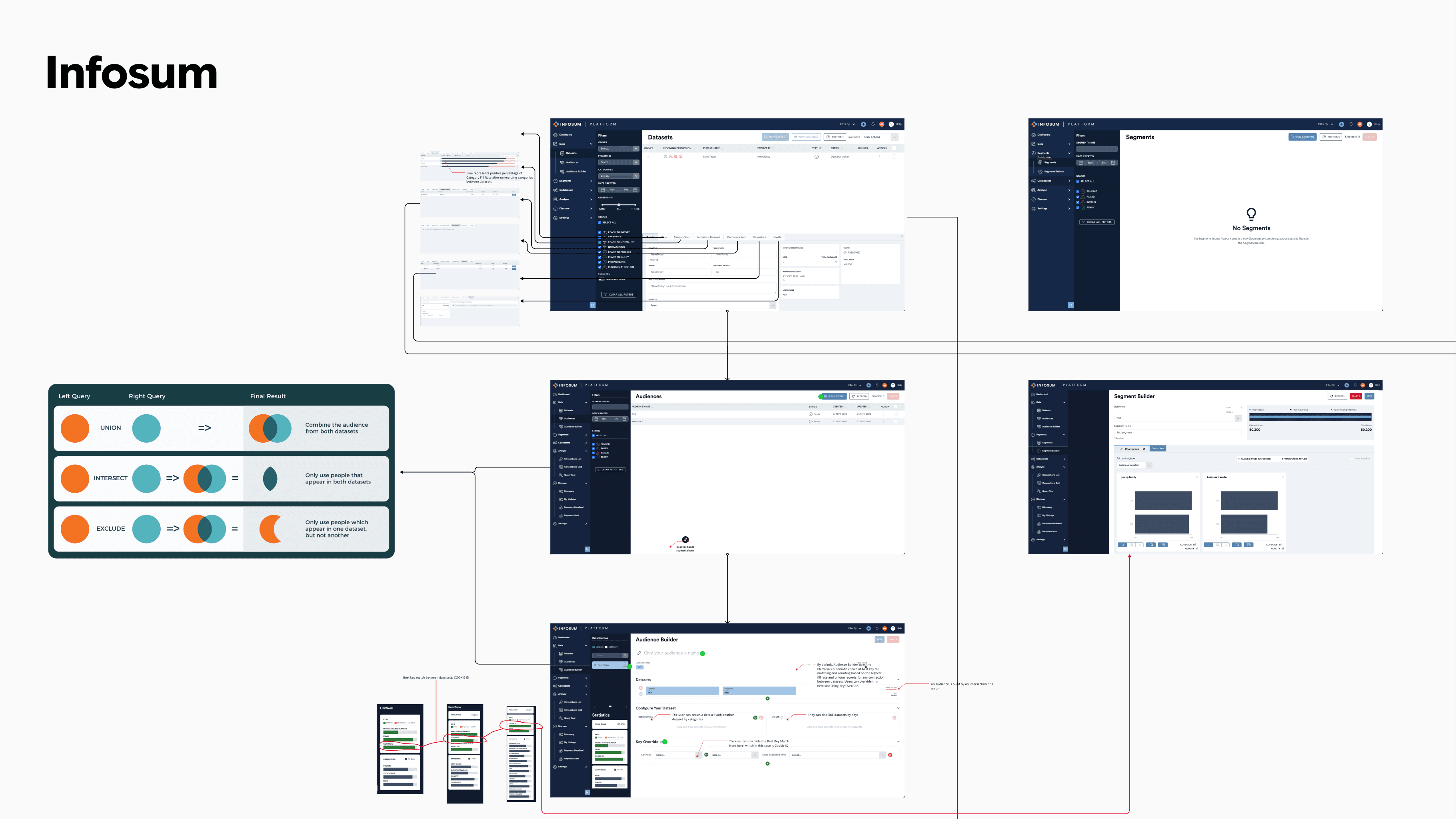 Unlike traditional SaaS tools, a data clean room operates on invisible logic. Users configure datasets, define keys, run queries, and generate reports without ever touching raw PII. The experience had to communicate trust, clarity, and control at every step.